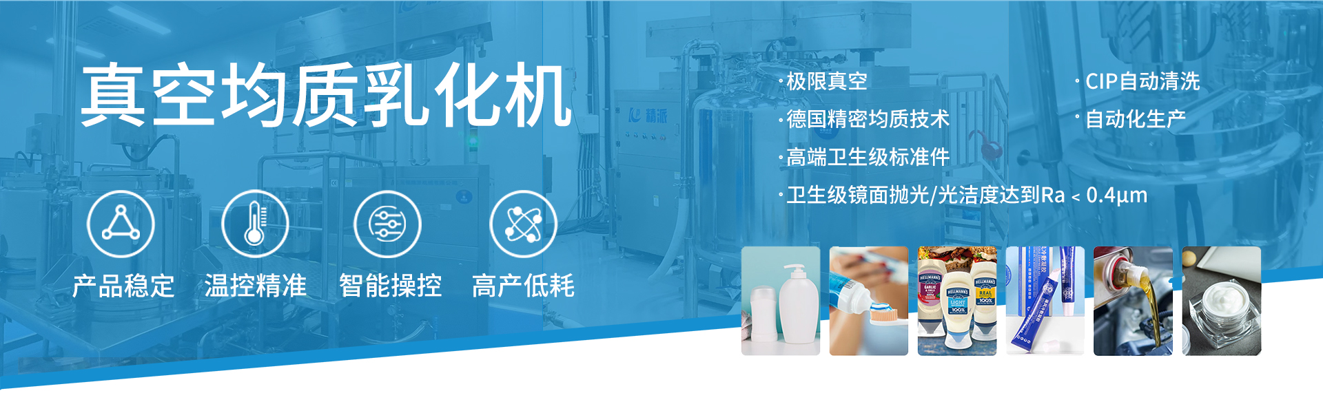 無(wú)錫精派機(jī)械成立于2009年,是一家高科技乳化 灌裝包裝生產(chǎn)線解決方案集成供應(yīng)商,致力于用 戶合規(guī)化、高效化、智能化產(chǎn)業(yè)升級(jí)。應(yīng)用行業(yè) 包括制藥醫(yī)療、寵物醫(yī)療、日化護(hù)理和醫(yī)院等。 應(yīng)用產(chǎn)品涵蓋水劑、膏劑、凝膠、液體制劑、粉 劑、注射劑等非無(wú)菌和無(wú)菌產(chǎn)品。